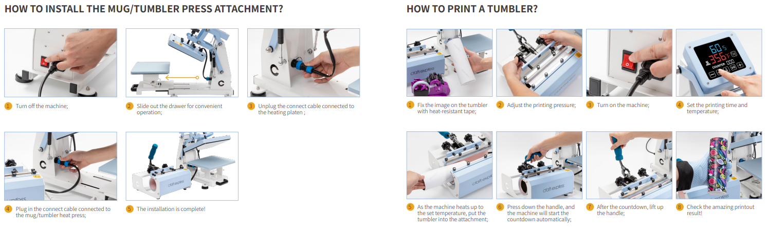 Optional add-ons: hat/cap press, tumbler/mug press, and plate press.